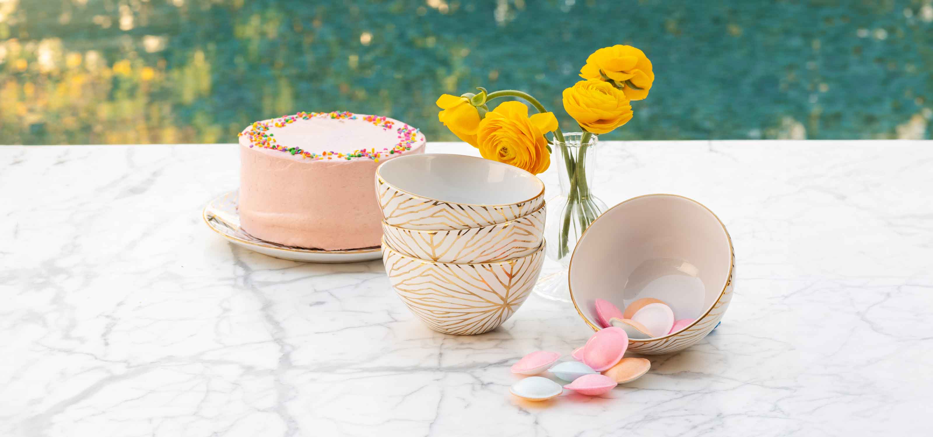 Talianna Lily Pad Bowls, White & Gold, Set of 4